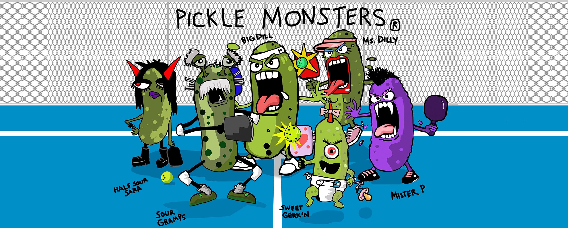 Pickle-Monsters Pickleball Bucket Hat Featuring the Dreaded Pickle-Monsters Crew- 3 sizes